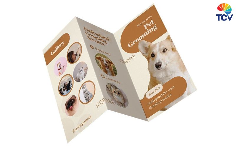 - Leaflet gấp 3 (Tri-Fold): Gấp 2 nếp, tạo 6 mặt nội dung dùng nhiều trong quảng cáo dịch vụ, du lịch, nhà hàng.