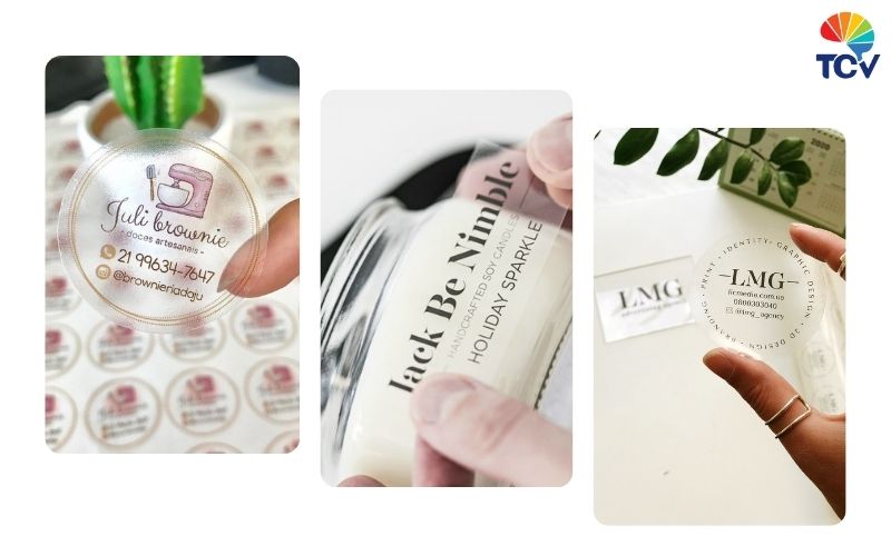 - Tem trong (transparent): Trong suốt, nổi bật phần in trên nền sản phẩm